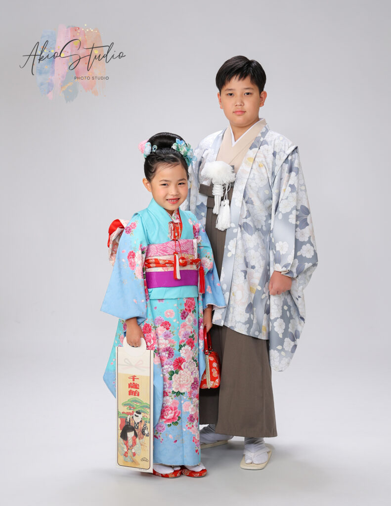 水色の着物が映える兄妹ショット